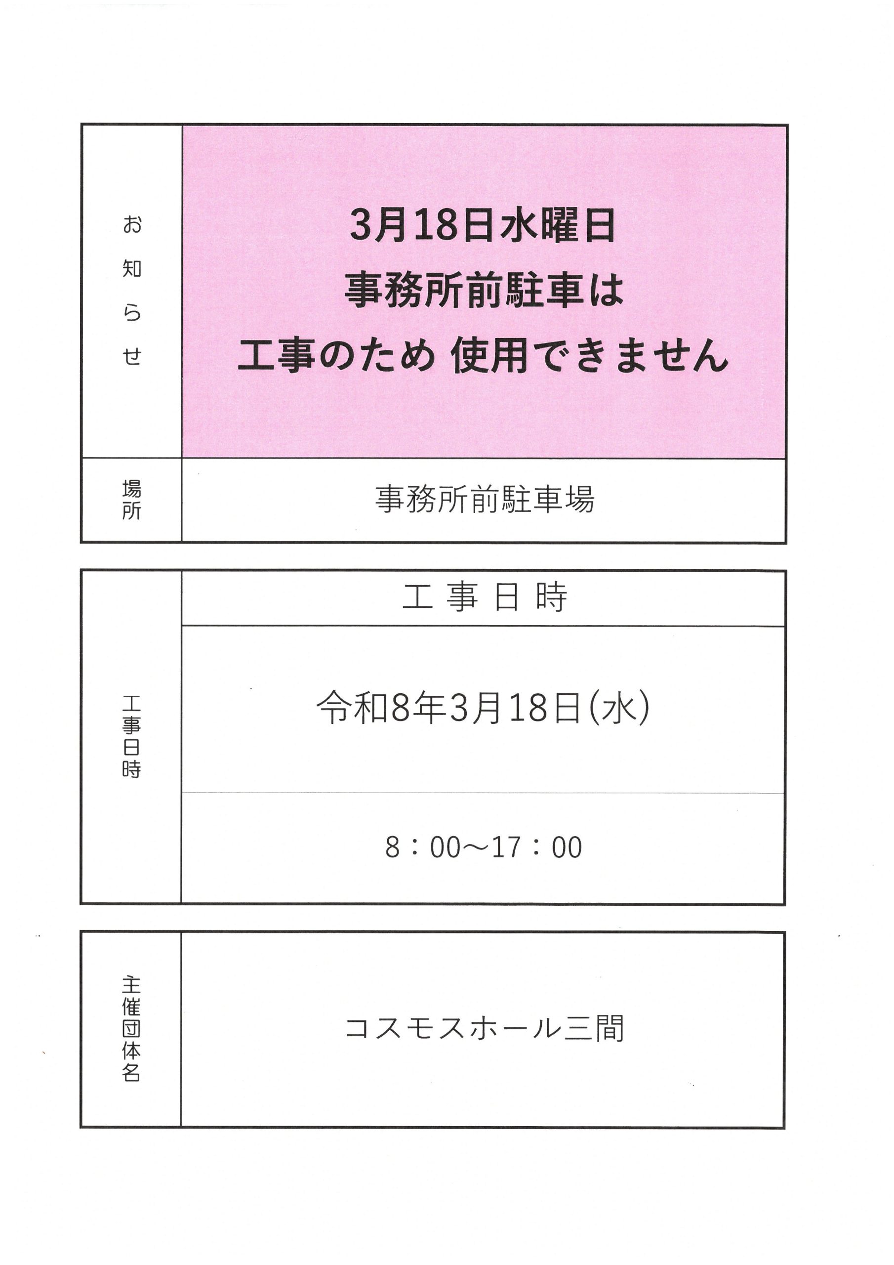 3月18日(水)事務所前駐車場工事