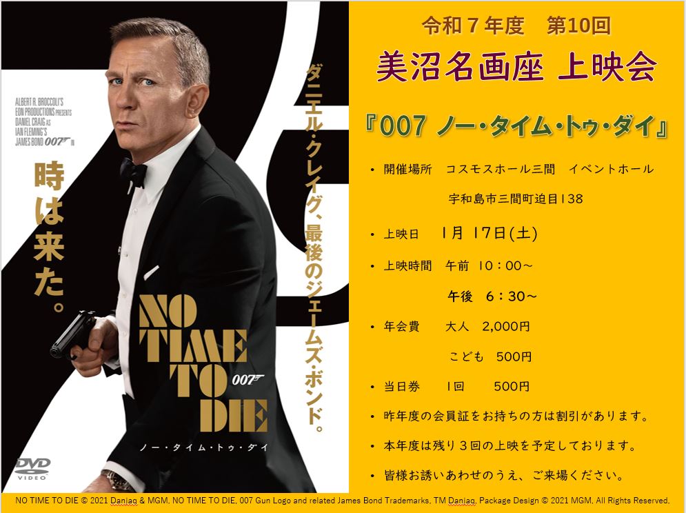 | 2026/1/11 | 2026/1/12 | 2026/1/13 | 2026/1/14 | 2026/1/15 | 2026/1/16 | 2026/1/1709:30: 第10回美沼名画座「NO TIME TO DIE ノー・タイム・トゥ・ダイ/コスモスホール三間09:30: 第10回美沼名画座「NO TIME TO DIE ノー・タイム・トゥ・ダイ/コスモスホール三間 |