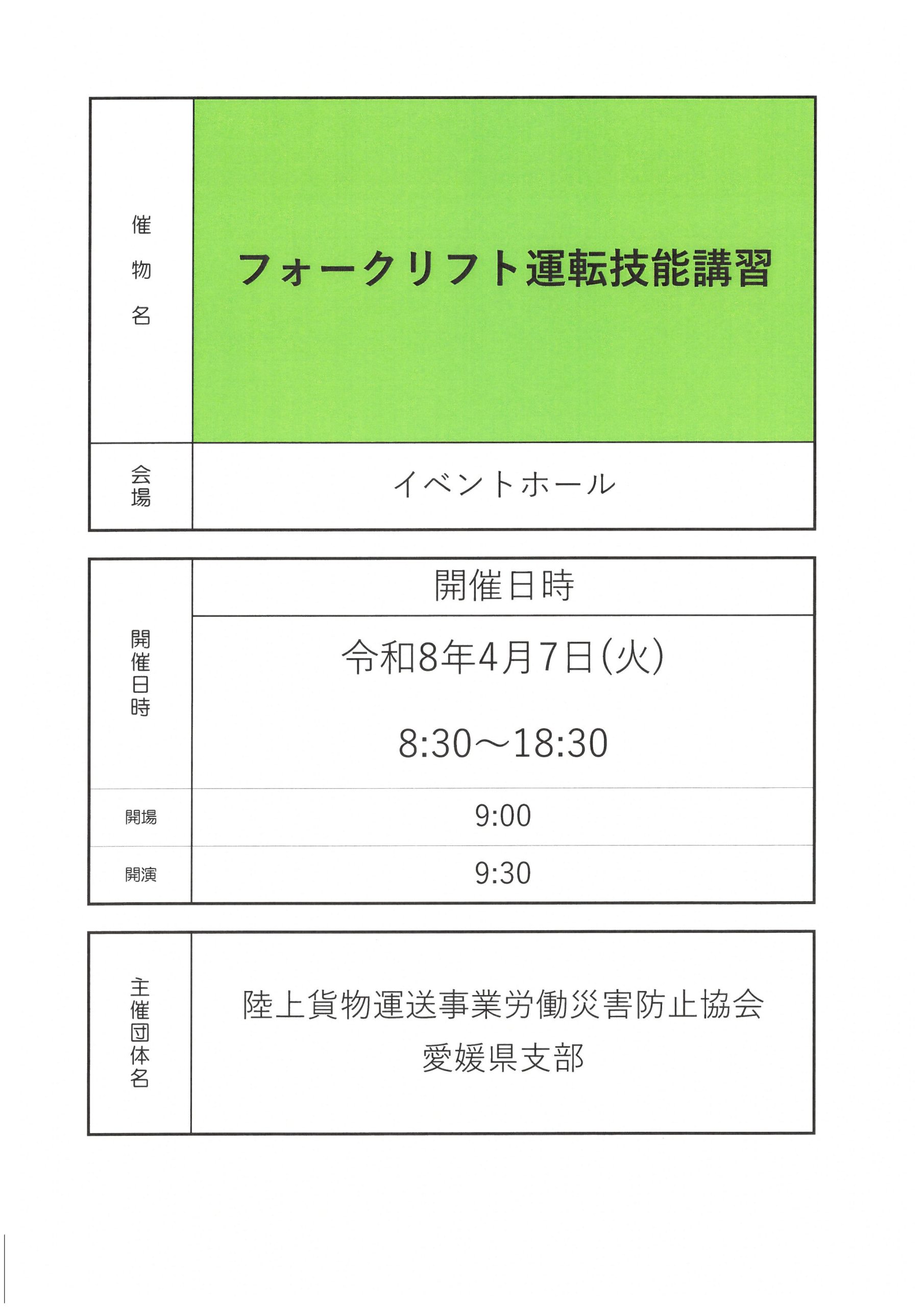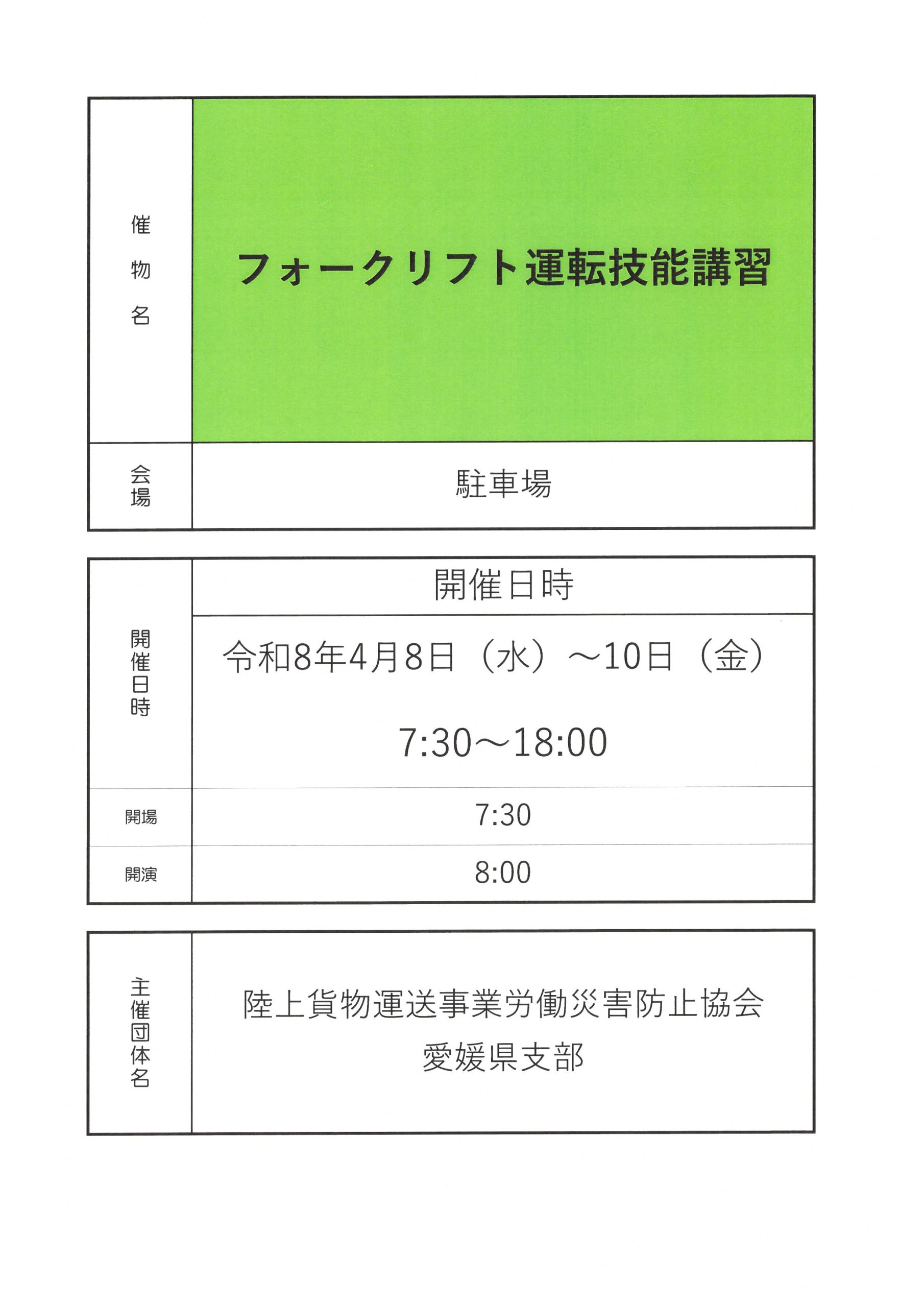 2026/4/907:30: フォークリフト繧繝技能講習 / 陸上貨物運送事業労働災害防止協会07:30: フォークリフト繧繝技能講習 / 陸上貨物運送事業労働災害防止協会 |